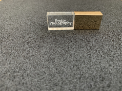 USB KRYSTAL sklo/kov "Pretty Photography" 2.0 - 3.0 zlatý - exkluzívny dizajnový USB kombinovaný z kovu a skla. V sklenenej časti je LED podsvietenie a gravír so svadobným motívom a s nápisom "Pretty Photography".